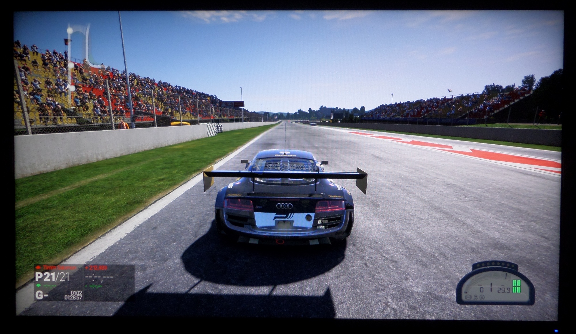 Analizzando il comportamento del Samsung con i videogames, l’impressione è quella di avere a che fare con un prodotto dalla buona reattività. I tre valori dell’overdrive settabili manifestano un comportamento diverso e quello centrale, come detto nel capitolo precedente, è quello che meglio bilancia l’effetto scia senza sfociare nel reverse ghost. La tecnologia AMD FreeSync aiuta a ridurre il tempo di lag e i fenomeni definiti stuttering e tearing, ma nel PC deve esserci una GPU Radeon compatibile. Le tre immagini qui di seguito riportate permettono un confronto tra la riproduzione con le impostazioni indicate.