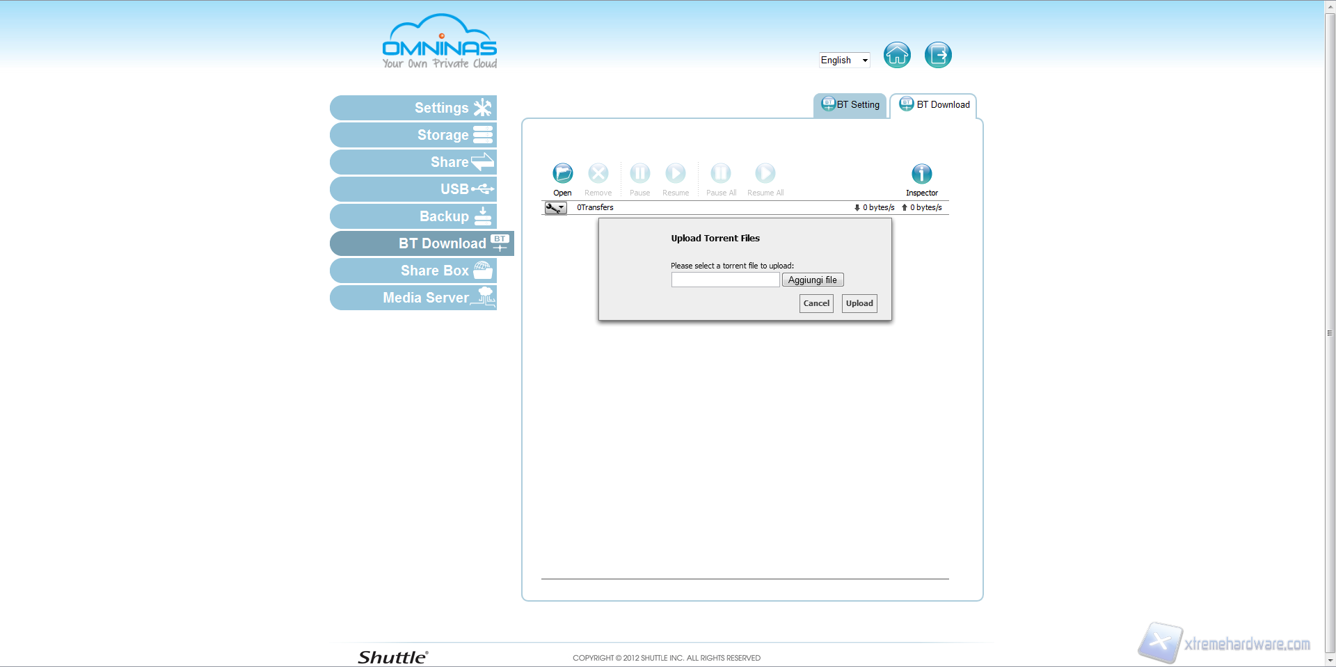 BT Download, invece, ci permette di downloadare un file Bit Torrent direttamente sullo Shuttle OMNINAS KD20.