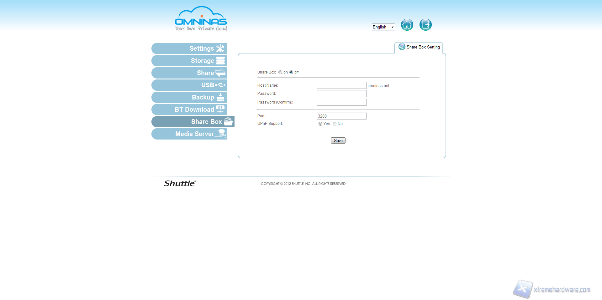La funzione “Share Box”, penultima voce del menu laterale, permette all’utente di condividere i propri dati sulla rete esterna grazie ad un dominio di terzo livello protetto ovviamente da password.